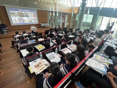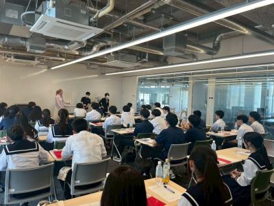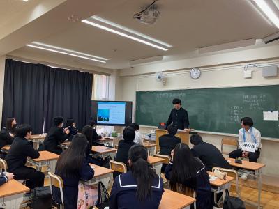 見学先では、概要説明や、学生さんによるキャンパスツアーをしていただきました。生徒たちは、熱心にお話を聞き、楽しんでいました。