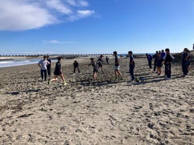 陸上トラックやロード、砂浜などを使い、走り込みや補強トレーニングなどを行いました。